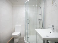 - The flat has a kitchen combined with a living room, 2 separate rooms, a balcony, and a large bathroom with toilet.
