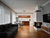 Self-sufficient, modern and well-maintained house almost in Mārupe. Living room with veranda…