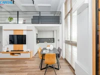 A modern flat with an area of 85,65 sq. m. The apartment is distinguished by impressive height ceilings, glass windows on two floors, which ensure abundant natural light and a sense of space. Modern interior, functional layout, unique design details and all necessary furniture and other amenities for everyday life create a comfortable and stylish environment. The project is admired by an industrial architectural style, high construction quality and comfortable place - it is a great choice for those who appreciate quality, aesthetics and modern lifestyle.