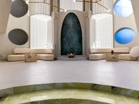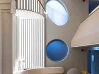 The interior is built by continuing the architectural line of the building. Installation - a pure result of time and patience. Just enjoy it. This is a space that buys its natural forms, color harmony, bent and refreshing.