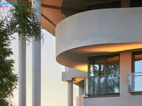 - Unique curved balcony and living space with sliding windows for home terrace;
