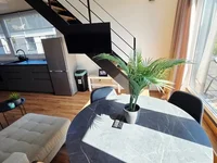 - Comfortable apartment layout, living room with entrance to the outdoor terrace on the first floor of the apartment, two bedrooms and a second saunas.