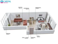 * Comfortable apartment planning - spacious living rooms and kitchen areas, separate bedroom, large wardrobe, cozy bathroom.