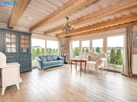 2-storey house, 1 floor - separate kitchen, spacious and bright living room, boiler house, sauna, bathroom, 2 floor - 3 bedrooms, bathroom (shower, bath), balcony. The living room is south-oriented, so there is no lack of sun and heat, and in the evenings the cosiness gives the fireplace. From the site you can go to a terrace under the roof.