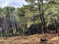 The plot is surrounded by pine trees and lush greenery, making it ideal for building a house or villa in a natural environment. The plot has road access, and electricity connections are available on-site.