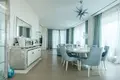 The apartment has a luxurious interior, which contains the highest quality materials and the latest technology. The sophisticated exterior created according to the highest world standards is decorated with a spacious terrace with a panoramic view of the sea, terrace furniture and a jacuzzi.