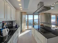 We are entering lumious living and dinning area with a functional kitchen, fully equipped with highest quality appliances.