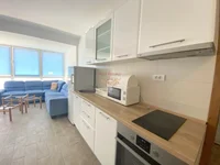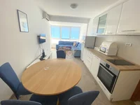 Apartment consist : living room with kitchen, dining zone, two bedroom, bathroom and terrace. From the terrace opening mountain view.