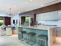 The interior has an author's design with a set of ambient lighting. Italian ceramic tiles of solid quality were used in the decoration, natural wood flooring in the bedrooms, climate systems and ventilation, heated floors, fireplaces.