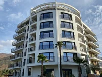 This three bedroom apartment for sale is located in Seljanovo, an attractive and vibrant family neighbourhood of Tivat, a short stroll away from the waterfront, local beaches and a lovely promenade, and 10 minutes away on foot from Porto Montenegro. There are children’s playgrounds, sport facilities, green areas, school and kindergarten, and numerous shops and cafes in the vicinity. The apartment is positioned on a 6th and final floor of the newly completed, high quality building. It features a massive open plan living, dining area and kitchen, 45sqm in size, three bedrooms one of which is en suite, additional bathroom and a guest toilet, as well as an arch shaped terrace of 30sqm with breath-taking views across Tivat Bay. The unit is bright, with massive windows and stunning sunsets. Garage space comes with the apartment.