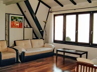 Third floor - bedroom; a huge hall with a home cinema and a fireplace; shower room + bathroom