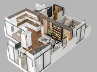 Each townhouse with an area of 130 m2 and own plot of 200 sq.m. It consists of living room-kitchen, 2 or 3 bedrooms, 2 bathrooms, 2 terraces and a parking. There are 4 units in one townhouse.