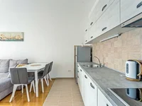 - Convenient layout: hallway, living room with kitchen area, bedroom, bathroom, spacious terrace with beautiful mountain views and a little sea.