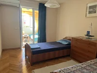 We offer a spacious apartment with a total area of 105 m2 with two bedrooms in the city of Budva, located next to the Slavija hotel, in the Babilonija area. The layout includes a combined living room with a dining area, two bedrooms, two bathrooms, a kitchen, a pantry-laundry and a terrace. The area without a terrace is 92 m2.