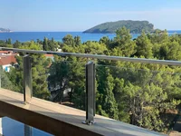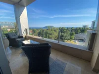 The apartment has a living room with a kitchen area, two separate bedrooms, a hallway, 3 bathrooms and a large terrace overlooking the sea.