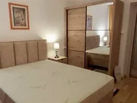The apartment is completely renovated with modern furniture.