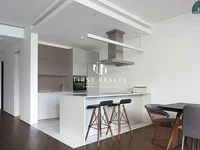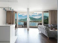 The apartment has a large living room, a fully equipped kitchen, 2 bedrooms, and 3 bathrooms. It features exceptional panoramic windows, high ceilings, a well-designed area, and a wonderful view of the Adriatic Sea and St. Nicholas Island.