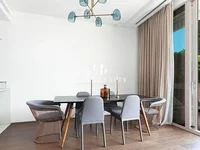The apartment is equipped with a modern air conditioning system and a smart home system, allowing remote control of lighting, boiler, and underfloor heating.