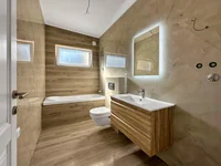 The house has panoramic, sliding windows. On the floors with heating will be a porcelain tile of the highest quality, and high -quality sanitary technology will also be installed at the end of work, which are planned for July 2023.