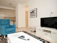 Planning of the apartment: a living room combined with a dining room and open kitchen, a bedroom, a bathroom and a terrace. The apartment is furnished and equipped, sold with all furniture. In the kitchen and bathroom, the floor is heated. The windows open from the windows.