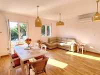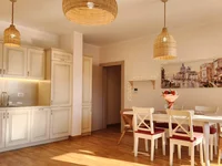 An apartment with 2 bedrooms with an area of 65 m2 with a panoramic look for the entire Budva, Sea and Mountains is sold. The apartment is in a comfortable 13 -minute walk to the sea, beaches and a promenade zone, in close proximity to the active old city, while in a quiet beautiful area near nature with birds singing in the morning. Nearby are a large supermarket, popular restaurants, TQ Plaza, banks, mail, tourist office, state institutions and a school, which makes this place ideal for relaxation and permanent residence. The apartment is located in a new building, which is distinguished not only by an excellent location, but also with high quality construction with a thoughtful layout of housing. The apartment is located on the 5th floor, which is suitable for both panoramic lovers of the city, and for those who prefer low floors and a picturesque view of trees. The apartment has excellent natural lighting. The layout includes 2 bedrooms with a total capacity of up to 5 sleeping places, a living room with a spacious kitchen area, a bathroom equipped with a heated floor, and a balcony with a panoramic sea view and city.Each bedroom and living rooms have air conditioners. The floor is made of natural wood. External window blinds and retractable antimoscate nets are installed on the windows and balcony doors. The apartment is sold completely furnished, including all the necessary equipment. The kitchen has a built -in full oven, dishwasher and water filter. All equipment is new and high quality. The house is equipped with underground parking and an elevator. The price includes a garage place.