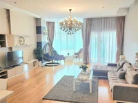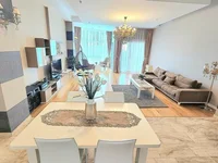 This fully funished three bedroom apartment of 178 sqm is positioned on the 14th floor in a building with a SPA center and swimming pool, in the first zone.