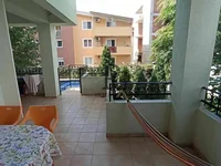 Description: A two-bedroom apartment in a club house with a pool in Budva. Bright and spacious apartment with double windows offering a stunning view of the mountains and the property. The living room has panoramic windows, creating a light and airy atmosphere. The apartment includes a large living room with a kitchen, a bathroom with a combined toilet, and two terraces. All kitchen and household appliances are included for comfortable living.