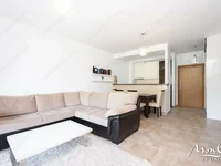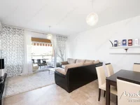On site is an outdoor swimming pool with sun loungers and showers, a shared lounge and a children's playground. There is a management company. Free parking at the house. The apartments are equipped with a kitchen with built-in appliances, a washing machine, air conditioning in each room, a shower, and furniture.