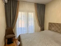 The apartment is equipped with new modern furniture according to the design project and high-quality appliances. All rooms have air conditioning, expensive chandeliers, curtains and textiles