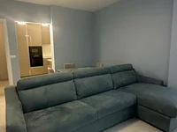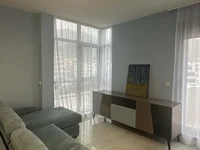 The apartment, with an area of 53 m2, is fully equipped with Italian furniture from the Evrokassa store, high-quality furniture in the kitchen with Bosch appliances, heated floors throughout the apartment, a large double bed with storage space, a good layout: a spacious hallway, a bedroom with a balcony, a living room with access to the balcony .