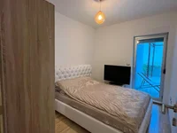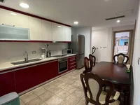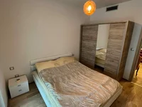 The layout of the apartment: living room with dining area combined with an open kitchen, two bedrooms, bathroom, guest toilet and a spacious balcony. The apartment is furnished and equipped, sold with all furniture.