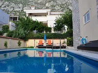 The villa is located on the coast of Kotor Bay, in the region Dobrota, two kilometers from the Old Town of Kotor. Because of the unique location and the beauty, Bay of Kotor is included in the UNESCO World Heritage List. The villa had been built in 1985, renovated in 2011 in a Mediterranean style. The four-storey villa consist of five apartments. Each apartment has a (partial) view of the sea and a separate entrance. On the spacious plot there is a swimming pool for both adults and children, detached house, barbeque, a spacious veranda and vineyard room, garage for three cars and four parking spaces next to the house. Distance from the sea is 200 meters down the road (three minutes on foot). Shops and restaurants are within walking distance, not more than 100 meters. 1st floor: Apartment with a total area of 45 m2 - a fireplace room studio; bathroom, equipped kitchen (stove, refrigerator, microwave, kettle).