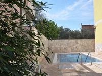 The house has 3 floors and consists of 5 apartments. Each apartment has its own bathroom and kitchen. Around the house there is a swimming pool and parking. The distance from the town is 10 km. Distance from the nearest beach is 2 km, and from the airport 20 km.