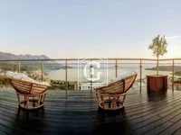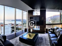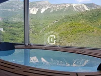 Premium house. A large terrace with a swimming pool and a panoramic view of the sea and mountains. Repair of high-quality and expensive materials. Stylish and modern interior with new, harmoniously selected furniture and appliances. Ceramic tiles, plumbing. Split system, electric boiler. Panoramic glazing. Bedroom with bathroom and access to the terrace. Elevator. On the territory of the complex pool, hammam, sauna, barbecue area / summer kitchen. Permanently residing in the complex service personnel.