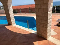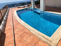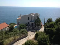 S890. Modern house with panoramic sea views in Ulcin.The house was built in 2006, there are building permits and commissioning. Plot area 400m2, house area 347m2. Three floors, 4 bedrooms, outdoor swimming pool, electric sauna, parking and garage. The layout of the house and the technical possibilities make it possible to adapt the house and interior renovation to the individual needs of any client. The house was built according to a special project that won the competition and received the title "not a house, but a sculpture" in 2008. The house looks like a castle and is built to last. Facing of the building from a natural stone. Excellent location just 250 m from the sea. Stunning panoramic view over 180 degrees, including views of the old town and the olive grove. Documents are clean, correspond to real data, the object is ready for sale.