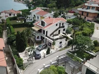 Spacious three-storey villa in Prčani, 50 meters from the sea. The total area is 230 m2 on a plot of 700 m2. It is located on the shore of the picturesque Kotor Bay. It was completely reconstructed in 2015. The territory of the site is set with trees and greens and in flowers.