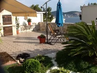 House for sale in Shushani, green zone. On the ground floor: kitchen-living room, bedroom and bathroom. There are 3 bedrooms and a bathroom on the second floor. Plot 200m2 with garden trees and barbecue. There is a garage with two parking spaces. 7 minutes walk to the sea.