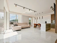 For sale is a unique apartment with breathtaking panoramic views of the azure Adriatic Sea, located on the Budva Riviera, where morning scenery will be your daily pleasure. The apartment of 90 m2 combines modern design and high-quality interior decoration, creating an atmosphere of refined comfort. The living room is decorated in light colors with elegant furniture and modern decoration. The spacious room includes a recreation area with a comfortable sofa and a stylish dining area made of natural wood. Modern kitchen harmoniously fits into the interior, combining functionality and aesthetics, with high-quality built-in wardrobes and an island for cooking.