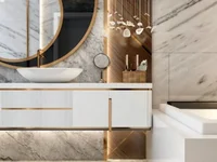 High-quality environmental building and finishing materials, natural stone in the facade decoration, aluminum fittings, natural granite and parquet board, high-quality Italian plumbing