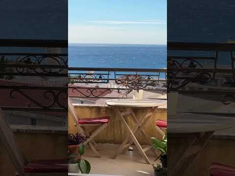 Cozy apartment of 38m2 on the 4th floor (top floor, under the roof, very high ceilings) Structure: 1 bedroom, kitchen-living room, balcony, bathroom. There is air conditioning in the living room. The kitchen has a stove, refrigerator, microwave and kettle. The balcony offers a very beautiful view of the sea. It is a 5-minute walk to the sea. There is a mini market near the house.