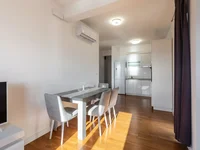A stylish and cozy 55-square-meter apartment is for sale in a new building located in one of the most picturesque and quiet areas of Bečići. The apartment is situated on a comfortable floor with a breathtaking view of the sea and the surrounding greenery. The spacious and bright living room seamlessly transitions into a modern kitchen, fully equipped with everything necessary for comfortable living: household appliances, kitchen furniture, and dining utensils.