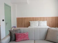This charming studio apartment offers the perfect blend of comfort and style! Carefully designed with attention to detail, the space radiates warmth and modernity. The main attraction is the beautiful round window that fills the room with natural light and provides a view of lush greenery, while the balcony doors create a sense of openness and freshness.