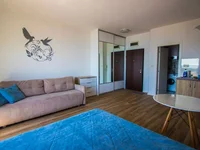 This modern and fully equipped studio of 34 m² is located in the picturesque fishing village of Rafailovići. Situated only 450 meters from the promenade and on the second beach line, the apartment offers magnificent views of the sea, mountains, surroundings and olive grove. The studio is on the third floor according to the Montenegrin numbering system.