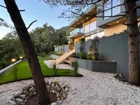 Современная семейная вилла общей площадью 480 м2 с бассейном размером 5,5 м х 4 м, расположенная в сосновом лесу на склонах горы Врмац.