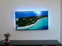 • A spacious living room with modern details, LED TV and a cozy sitting area.