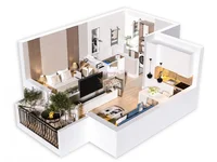 Apartment consist: kitchen with living room, bedroom, bathroom, hall and terrace.