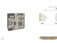 On the area of 51 m2, there is a living room with an open kitchen and dining room, bedroom, bathroom and terrace with partial sea and garden views. The thoughtful distribution of space and high standard of finishing guarantee comfort of living throughout the year.
