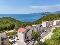 Rezevici, Smokov Vijenac neighborhood, exclusive townhouse in the final stage of construction, with a pool, parking space, and an open view of the sea and the natural Mediterranean environment. The house is 195 m², with a total of 4 bedrooms, 4 bathrooms, one toilet, a kitchen with a dining area, a living room, a sauna, a wine cellar, and a pool measuring 6x3m.