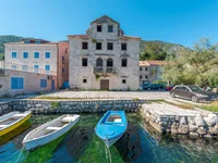 Historic stone palace for reconstruction in Prcanj, Kotor. The palace belonged to the noble Beskuca family, it was built at the beginning of the 18th century and is a typical example of the Bokele Baroque palace. It consists of 4 levels with a gross area of 608.5 m2, built of finely carved Korcula stone. On the ground floor there is the main entrance with two small windows with characteristic Baroque molding and two coats of arms in the form of relief. On the first floor there is a balcony with a stone balustrade and three supporting profiled consoles, which is accessed through two portals with arched skylights decorated with metal mesh. On the last level there is a lookout, the so-called belvedere, which is decorated with Baroque profiled volutes. Beskuca Palace is one of the few that is located on the coast itself, where direct and authentic contact with the sea has been preserved, with a paved courtyard in front of the palace, a pontoon and a mandrake. In the second half of the 19th century, the palace was a meeting place for numerous distinguished guests with whom Beskuce had a relationship. Montenegrin bishop, poet and philosopher Petar II Petrovic Njegos also spent the summer of 1844 in the palace. In 1878, an international fleet stayed in Boka, which ensured that Turkey cedes Bar and Ulcinj to Montenegro, and on that occasion, gala dinners, games and night parties were arranged for the commanders of various ships in the palace.