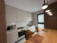 The apartment is fully furnished and equipped with top-of-the-line Bosch appliances, while the soft furnishings are imported from Italy. The apartment consists of a living room with kitchen, terrace with sea view, bedroom with double bed and bathroom. The kitchen and bedroom also have panoramic sea views.